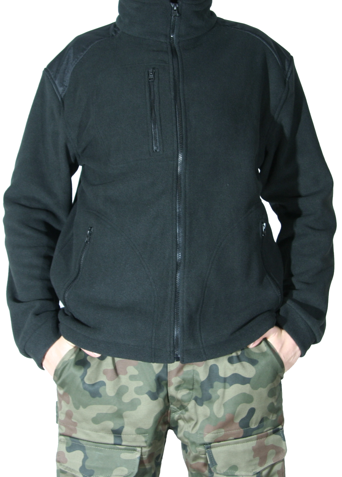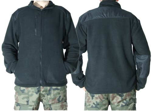 Czarna bluza polarowa, zapinana na zamek błyskawiczny. Polar posiada bardzo dobre właściwości cieplne. Wysoki kołnierz dobrze ochrania szyję przed zimnem. Polar jest wygodny, ciepły i przyjemny w dotyku.